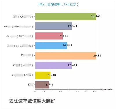 另外,网友对8款空气净化器除PM2.5的能力进行了测试,测试房间同测除甲醛的一样,见下图。除醛速率最高的除P速率不一定最高。